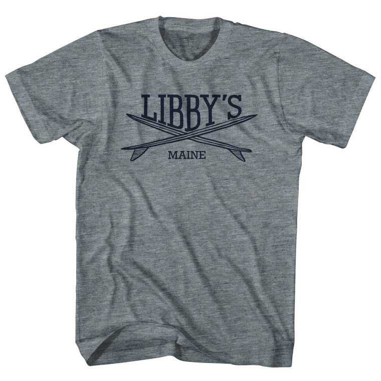 Libbys Surf Break Crossed Surf Board Surfing Destination Youth Tri-Blend T-Shirt - Athletic Grey