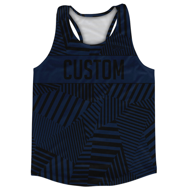 Multiple Lines Pattern Custom Finish Line Running Racerback Singlet - Blue Navy and Black
