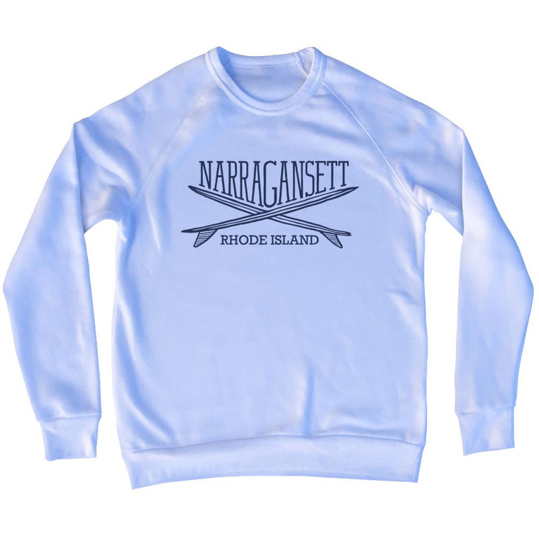 Narragansett Surf Break Crossed Surf Board Surfing Destination Adult Tri-Blend Sweatshirt - White