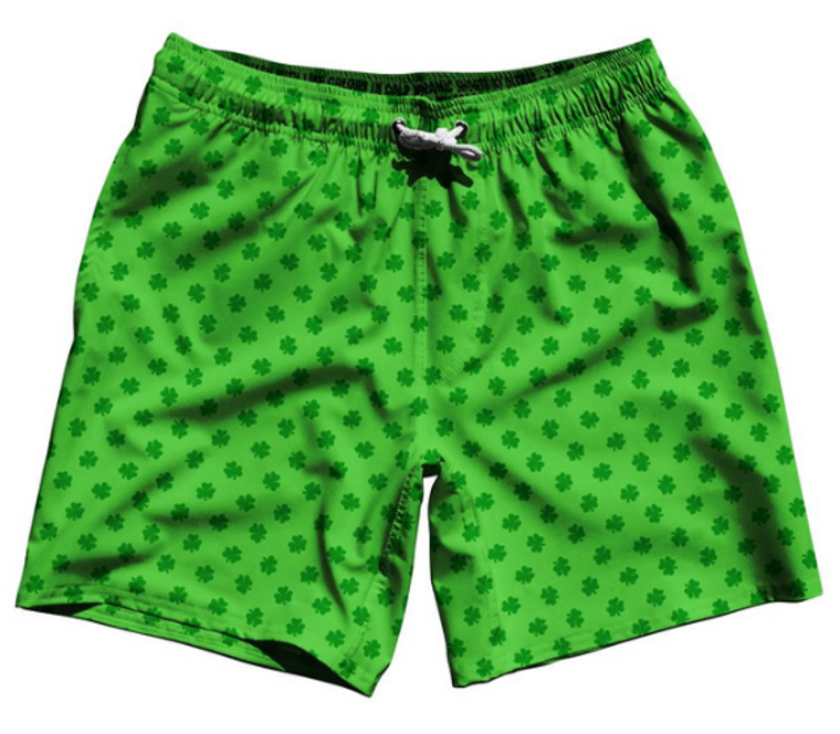ADULT 3X-LARGE- Ireland Irish Shamrock Clovers Swim Shorts 7.5" Made in USA - Green- Final Sale ZT981